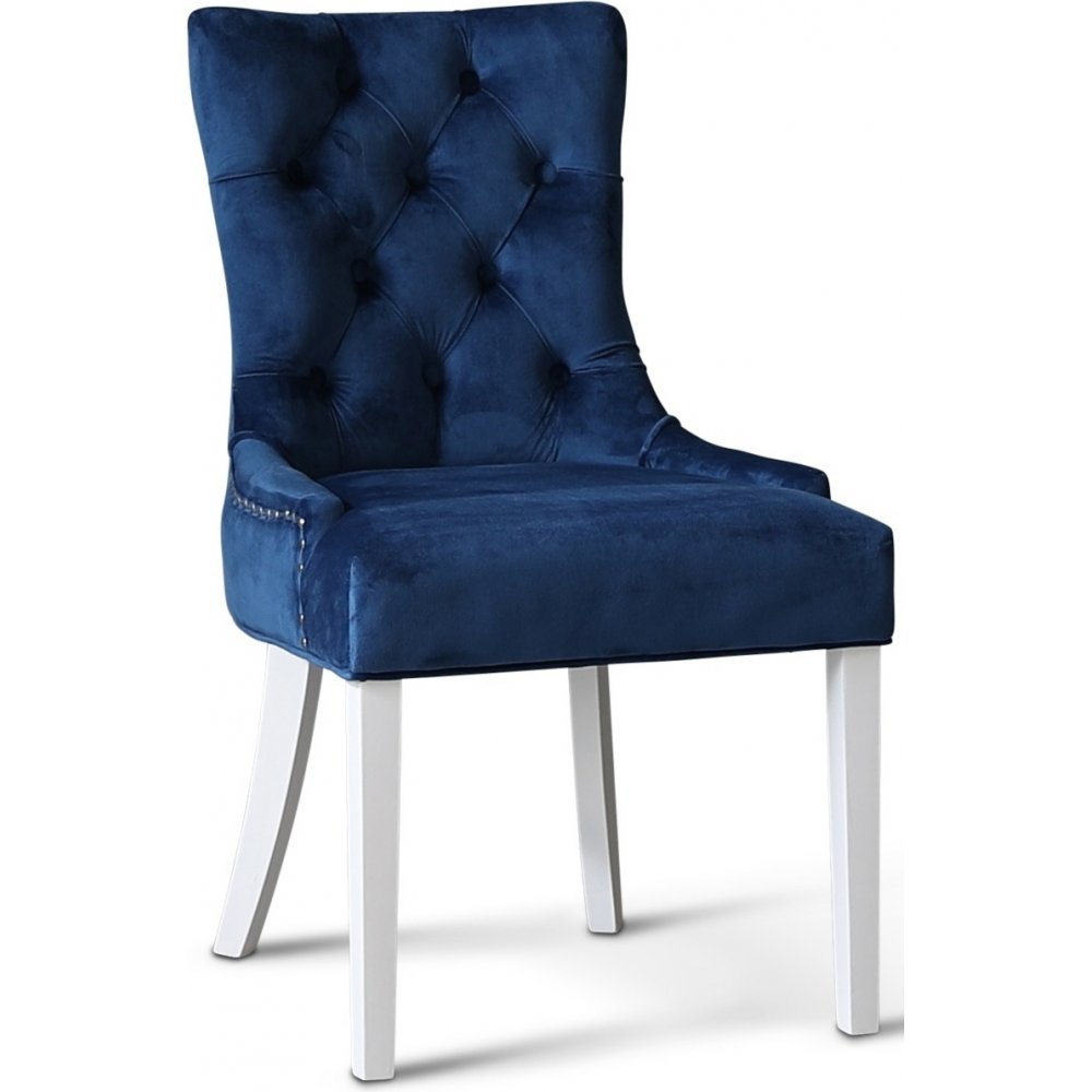 Dalsland matgrupp: Matbord i vit / ek med 6 st Tuva stolar i blå sammet