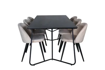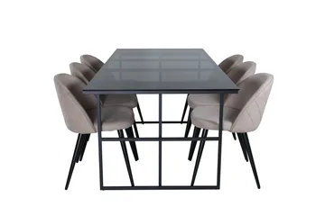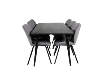 Petra Matgrupp 190 cm Rektangulär med 6 Velvet stolar, Svart