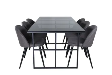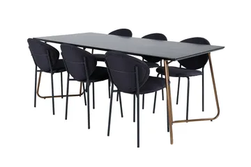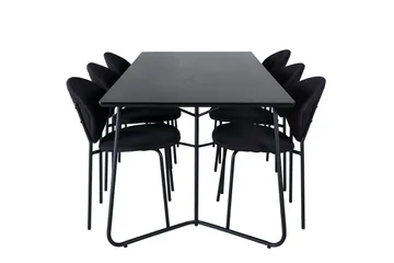 Petra Matgrupp 190 cm Rektangulär med 6 Vault stolar, Svart