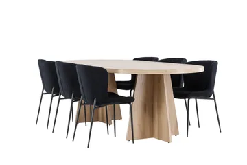 Dijon Matgrupp 200 cm med 6 Tuva Fåtölj, Vintage Trä / Svart Pu