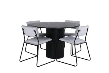 Lanzo Matgrupp 120 cm Rund med 4 Montros stolar, Svart