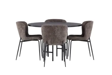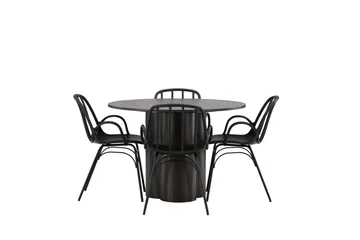 Lanzo Matgrupp 120 cm Rund med 4 Stella stolar, Svart