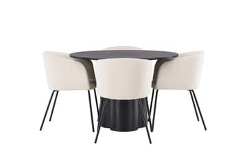 Edina Matgrupp 110 cm Rund med 4 Edina Stolar, Svart