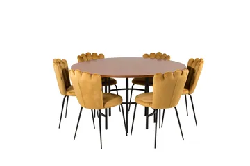 Copenhagen Matgrupp 140 cm Rund med 6 Velvet Deluxe stolar, Svart