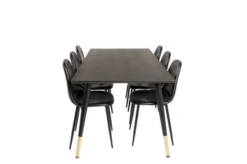 Dipp Matgrupp 180 cm Rektangulär med 6 Polar stolar, Svart/Guld