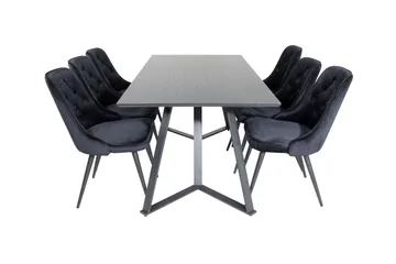 Marina Matgrupp 180 cm Rektangulär med 6 Velvet Deluxe stolar, Svart