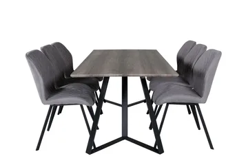 Dipp Matgrupp 180 cm Rektangulär med 6 Gemma stolar, Svart
