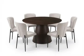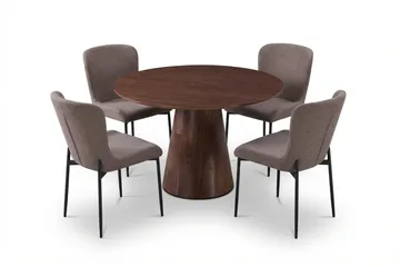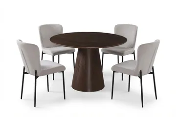 Kopparbo Runt Matbord 120 cm med 4 Filip Matstolar, Mörkbrun / Taupe Bouclé