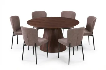 Kopparbo Matgrupp 150 cm Rund med 6 Dastoori Matstolar, Valnöt