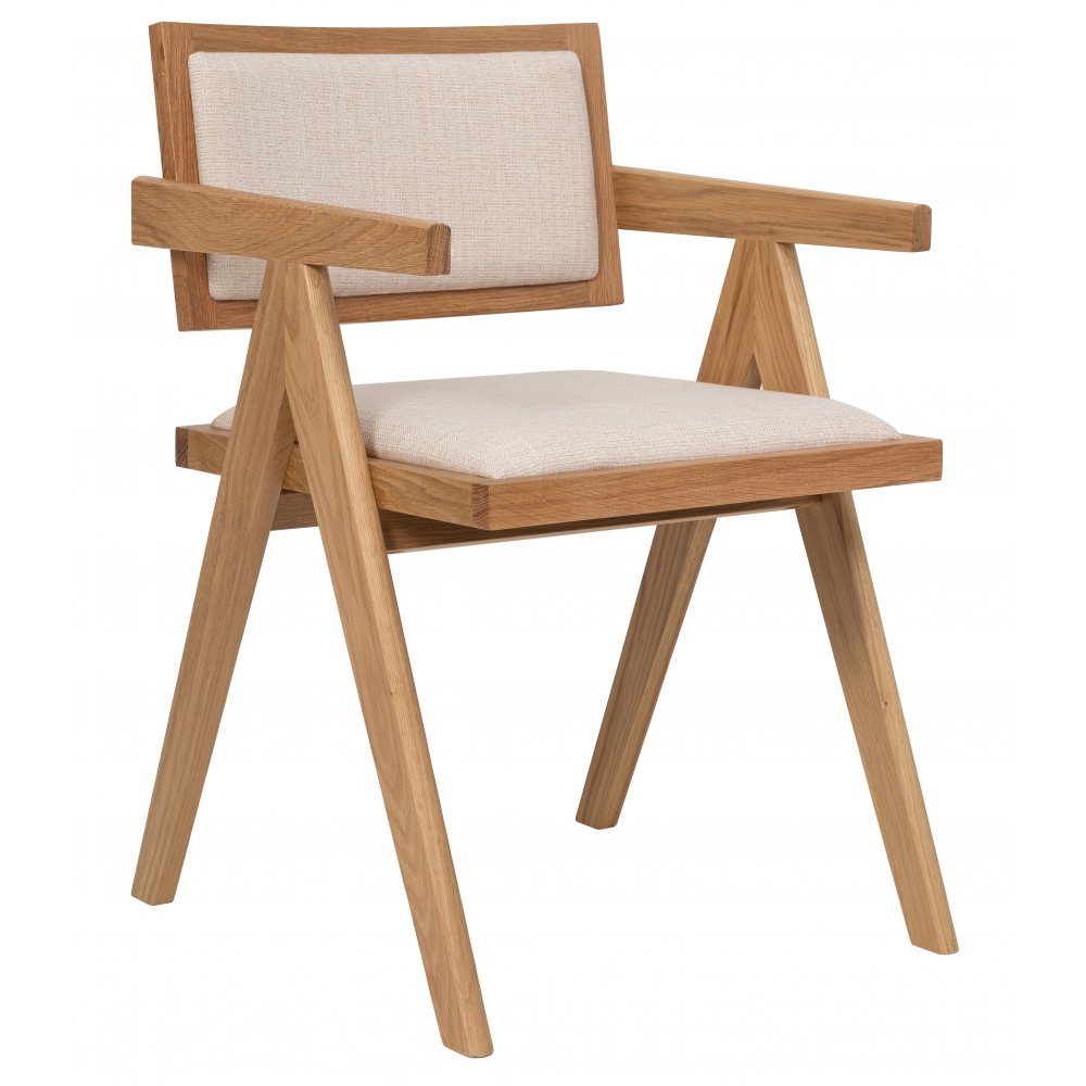 Sara karmstolar kompletterar bordet med sin klassiska form och sitt naturliga uttryck. Den massiva ramen i FSC-certifierat ekträ tillsammans med den ljusa linneklädseln skapar en balans mellan komfort och elegans. Stolen har en skön sittkomfort och sina rena linjer gör att den passar perfekt till Sumner-bordets runda form.