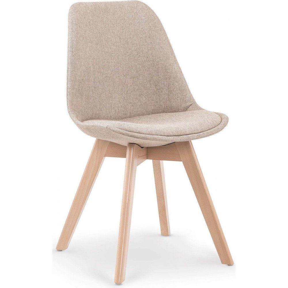Merle matstol kombinerar stilren design med hög komfort och är det perfekta valet för både moderna och klassiska hem. Stolens sits är klädd i mjukt och slitstarkt tyg i en varm beige nyans, medan benen är tillverkade av solid trä med en naturlig finish som utstrålar tidlös elegans. Dess ergonomiska form gör den bekväm för långa middagar och vardaglig användning.