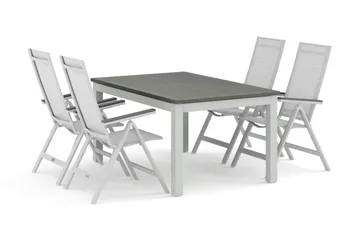 Monaco utomhus matgrupp förlängningsbart 150-250x90 med 4 Monaco Light positionsstolar, Vit/Grå