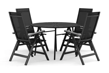 Tunis utomhus rund matgrupp 120 cm med 4 Monaco Light positionsstolar, Svart/Svart