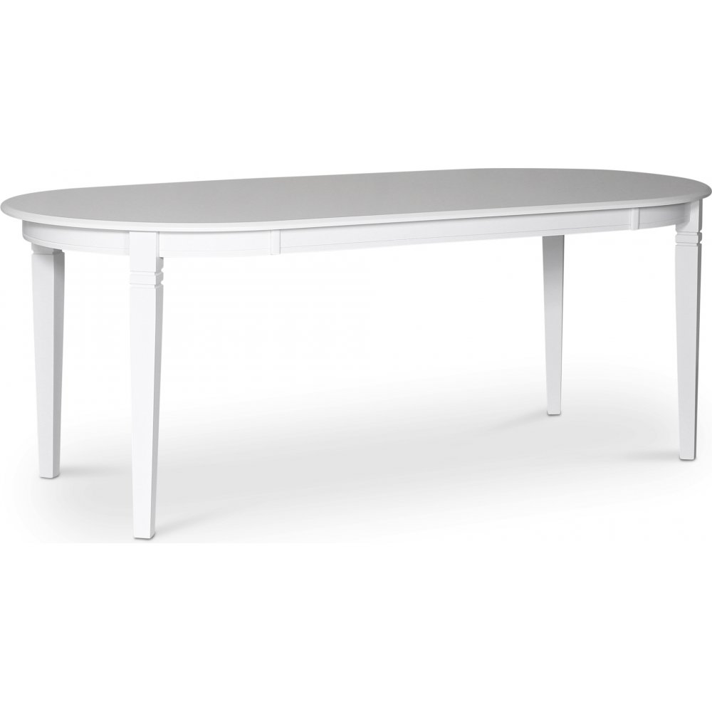 Sandhamn matgrupp Klassiskt utförande. Stilrent Ovalt matbord med vitlackade ben och bordsskiva.