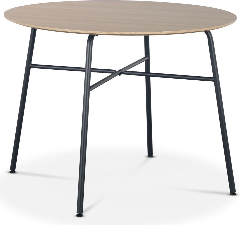 Tofta matgrupp bestående av ett Ø100 cm stort bord med toppskiva av MDF i utförande ljust trä, underrede av svart pulverlackerad metall. Ingår gör också 4 st Hogrän stolar med brun klädsel och svart stomme. En matgrupp i stilren modern design. Fokus på att vara minimalistisk i sitt utförande och färgval som passar bra ihop.