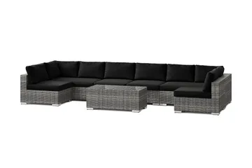 Bahamas U-formad utomhus loungegrupp med stängt avslut, 7-sits med bord, Svart