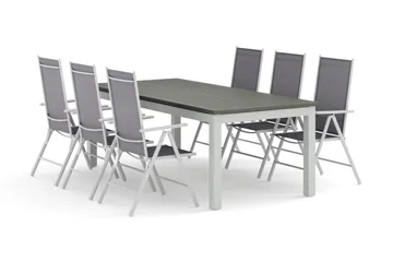 Monaco utomhus matgrupp förlängningsbart 210/310x90 med 6 Maggie positionsstolar, Vit/Grå