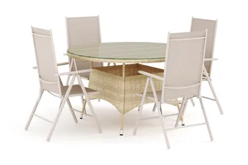 Thor utomhus rund matgrupp 140 cm med 4 Sanna positionsstolar, Beige