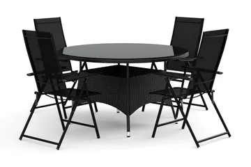 Thor utomhus rund matgrupp 140 cm med 4 Maggie positionsstolar, Svart