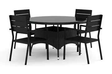 Thor utomhus rund matgrupp 140 cm med 4 Monaco Light positionsstolar, Svart