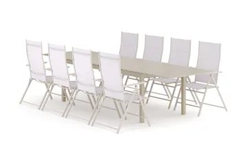 Tunis utomhus matgrupp förlängningsbart 205/305x90 cm med 8 positionsstolar, Beige/Beige