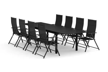 Las Vegas utomhus matgrupp förlängningsbart 220x280x100 cm med 8 Las Vegas stapelstolar, Svart
