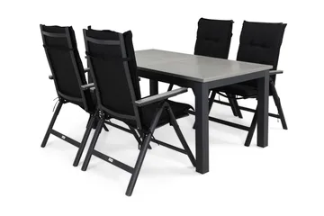 Monaco Matgrupp Utomhus 90x152-210 + 4 Positionsstolar m Dyna, Svart/Grå