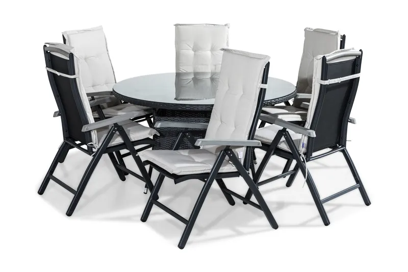 Monaco Matgrupp Utomhus 90x152-210 + 6 Positionsstolar m Dyna, Svart/Grå/Offwhite